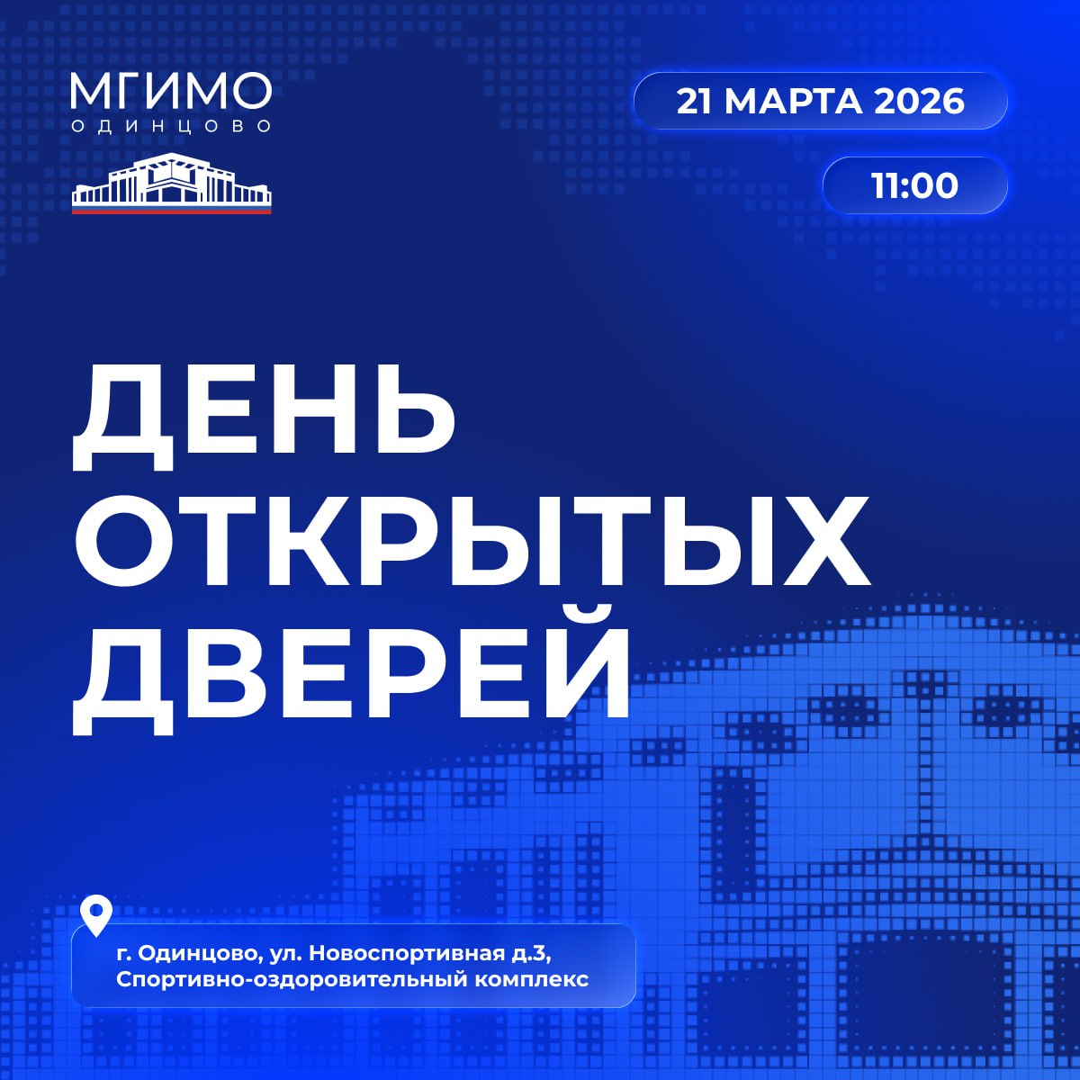 Новости21 марта 2026 года Одинцовский филиал МГИМО МИД России распахнет свои двери для всех абитуриентов и их родителей. Ждем вас по адресу: г. Одинцово, у...